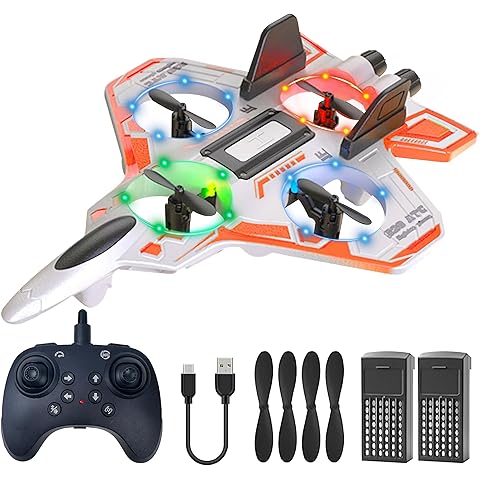 • Various Fun Modes for Non – stop Flying: This remote control airplane toys responds instantly to forward/backward, ascent/descent, and left/right commands, while advanced features like headless mode,3 speed modes and altitude hold keep flights smooth. It also has aerobatic rolls, 360° circling, and fast take-off!You can even try the amazing throw flight mode-throw it into the air and it will fly on its own, easily starting the flying adventure!