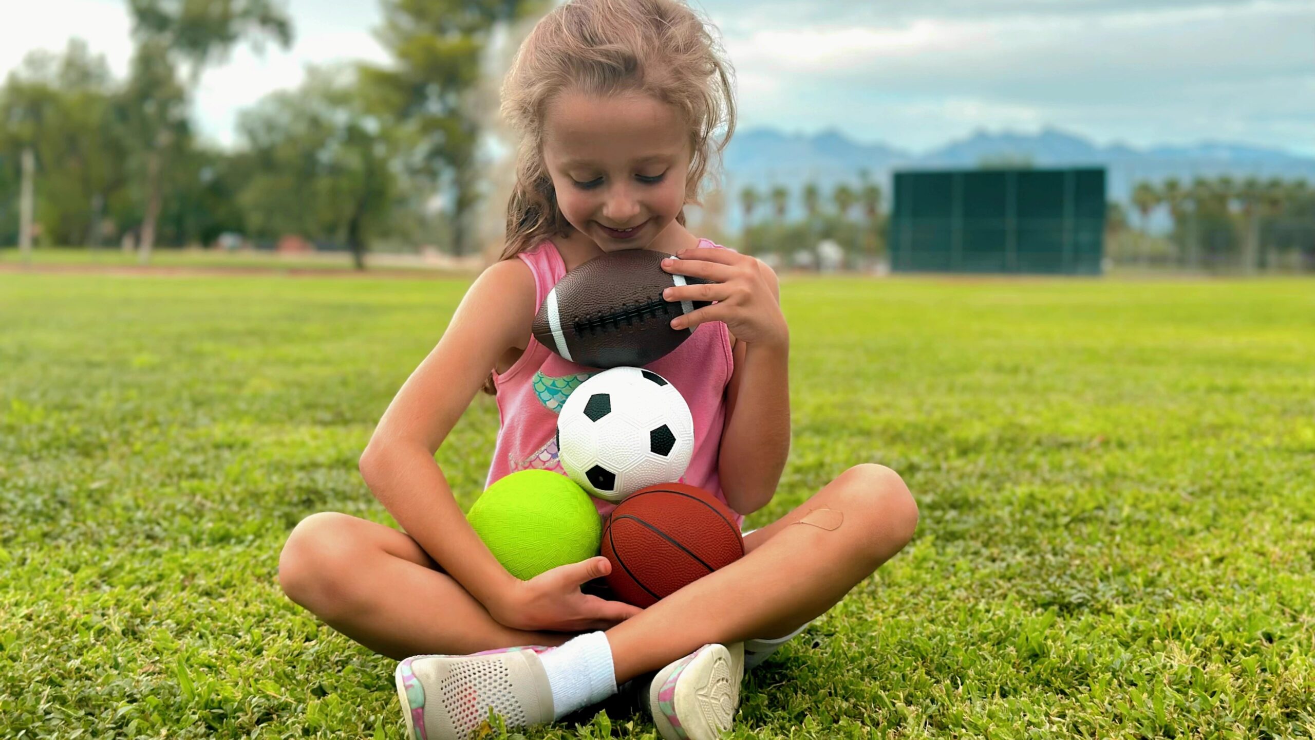 - Pack of 4 Sports Balls with 1 Pump: Includes 1 each of 5-inch Soccer Ball, 5-inch Basketball, 5-inch Playground Ball, and 6.5-inch Football. Small size for small hands. 1 unit of air pump is included in the package for handy and fast inflation.