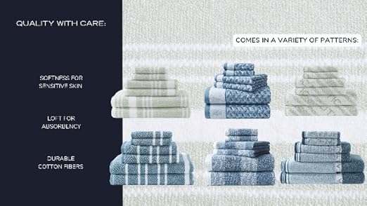 Nautica – Bath Towels, 100% Soft & Absorbent Plush Cotton Towels with Yarn Dye Loops, Medium Weight Bathroom Towels (Minera Greene, 6 Piece)
